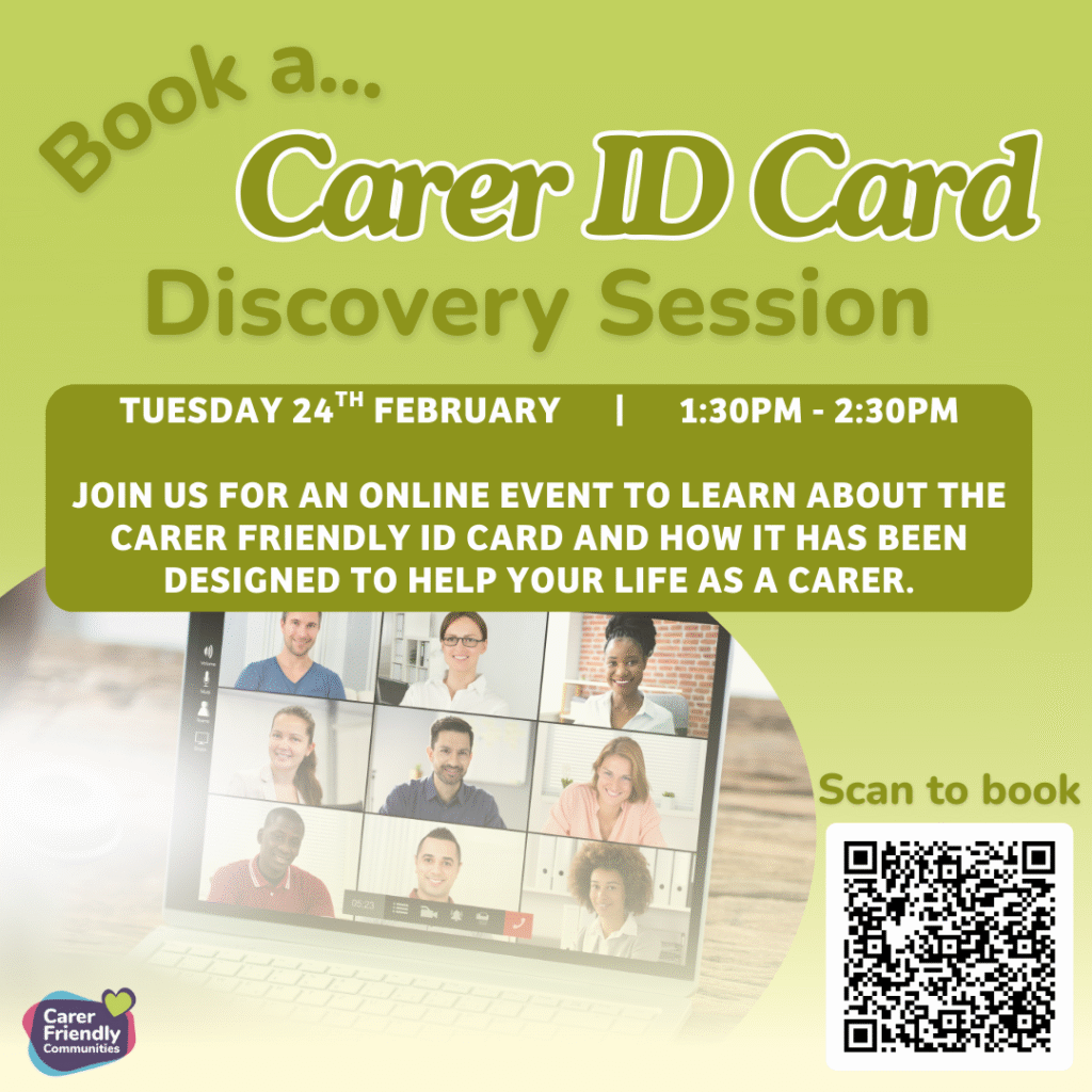The next online Carers Card Discovery Sessions are taking place on the 24th February 2026 at 1.30pm and 6.30pm!